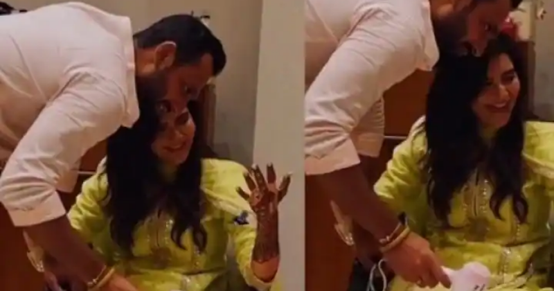 હળદરની વિધિ બાદ કરિશ્મા તન્ના મહેંદી સમારોહની વિધિ પણ કરવામાં આવી છે. જેની એક ઝલક અમે આ અહેવાલમાં તમારા માટે લાવ્યા છીએ. લગ્નના એક દિવસ પહેલા એટલે કે 4 ફેબ્રુઆરી 2022ના રોજ વહેલી સવારે કરિશ્માની મહેંદી સેરેમની યોજાઈ હતી. આ ક્યૂટ કપલ કરિશ્મા તન્ના અને વરુણ બંગેરાની મહેંદી સેરેમનીનો એક ખૂબ જ ક્યૂટ વીડિયો સોશિયલ મીડિયા પર સામે આવ્યો છે. આ વાયરલ વીડિયોમાં વરુણ બંગેરા તેની પ્રેમિકા કરિશ્મા તન્નાની મહેંદી સૂકવતો જોવા મળી રહ્યો છે. આ વીડિયોમાં વરુણ પણ કરિશ્માના હાથમાં પોતાનું નામ શોધતો જોવા મળી રહ્યો છે.