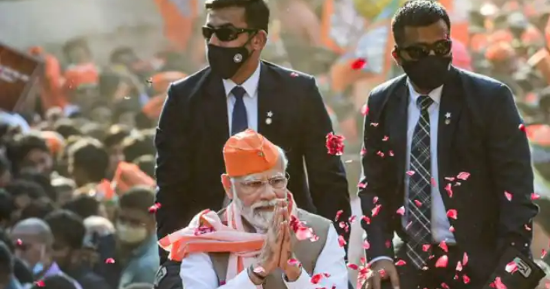 વડાપ્રધાન મોદીની સુરક્ષા માટે 4 આઈજી-ડીઆઈજી કક્ષાના અધિકારીઓ, 24 ડીસીપી, 38 એસીપી, 124 પીઆઈ, 400 પીએસઆઈ અને 5550 પોલીસકર્મીઓ તૈનાત રહેશે. તે જ સમયે, રોડ શો પછી, પીએમ મોદી કમલમમાં રાજ્ય સંગઠનની બેઠક કરશે અને ચૂંટણીની રણનીતિ પર ચર્ચા કરશે. અહીં પીએમને આવકારવા માટે માનવ આકારની રંગોળી બનાવવામાં આવી છે જેમાં મોદીને ગંગાનું જળ ચઢાવતા દર્શાવવામાં આવ્યા છે. આ સાથે જ અમદાવાદના જીએમડીસી ગ્રાઉન્ડ ખાતે સાંજે પાંચ વાગ્યે પંચાયત સંમેલનનો કાર્યક્રમ છે જેમાં દોઢ લાખથી વધુ જનપ્રતિનિધિઓ ભાગ લેશે.
