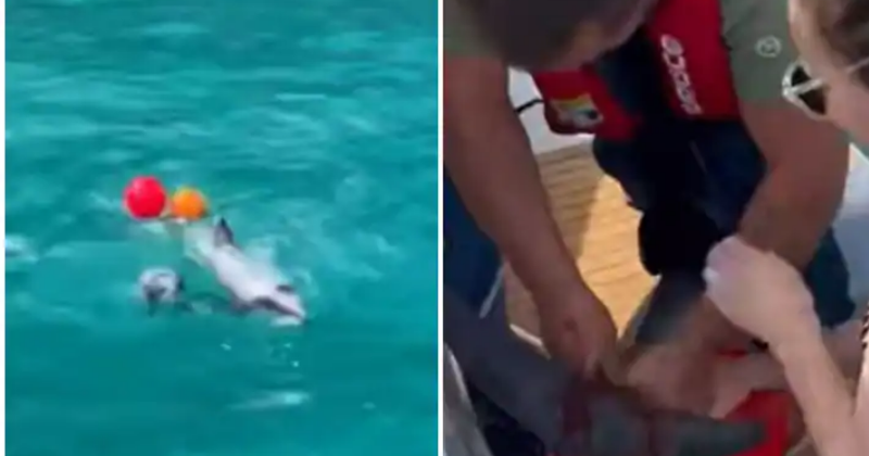 સોશિયલ મીડિયા પર વાયરલ થઈ રહેલો એક વીડિયો ન્યૂઝીલેન્ડનો જણાવવામાં આવી રહ્યો છે, જેમાં ડોલ્ફિન વોચ ક્રૂઝ પર કેટલાક લોકો બોય લાઈનમાં ફસાયેલી ડોલ્ફિનને મુક્ત કરતા જોઈ શકાય છે. એવું કહેવામાં આવી રહ્યું છે કે ન્યૂઝીલેન્ડમાં એક ડોલ્ફિન વોચ ક્રૂઝે બોય લાઇનમાં ફસાયેલી હેક્ટર ડોલ્ફિનને મુક્ત કરી. વીડિયોમાં જોઈ શકાય છે કે હેક્ટર ડોલ્ફિનની પૂંછડી બોય લાઈનમાં ફસાઈ ગઈ હતી.