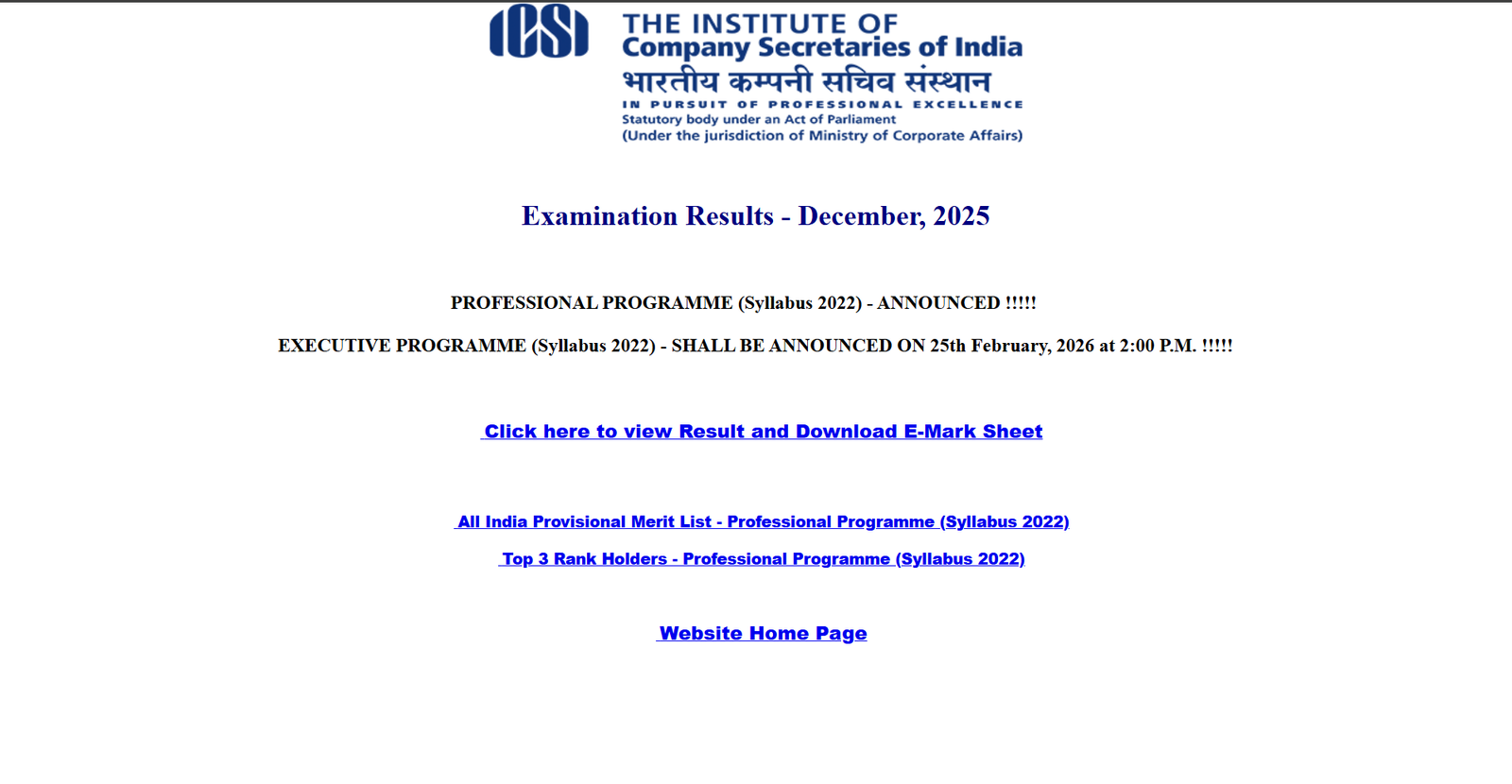 ICSI CS Professional December 2025 Results Now Available